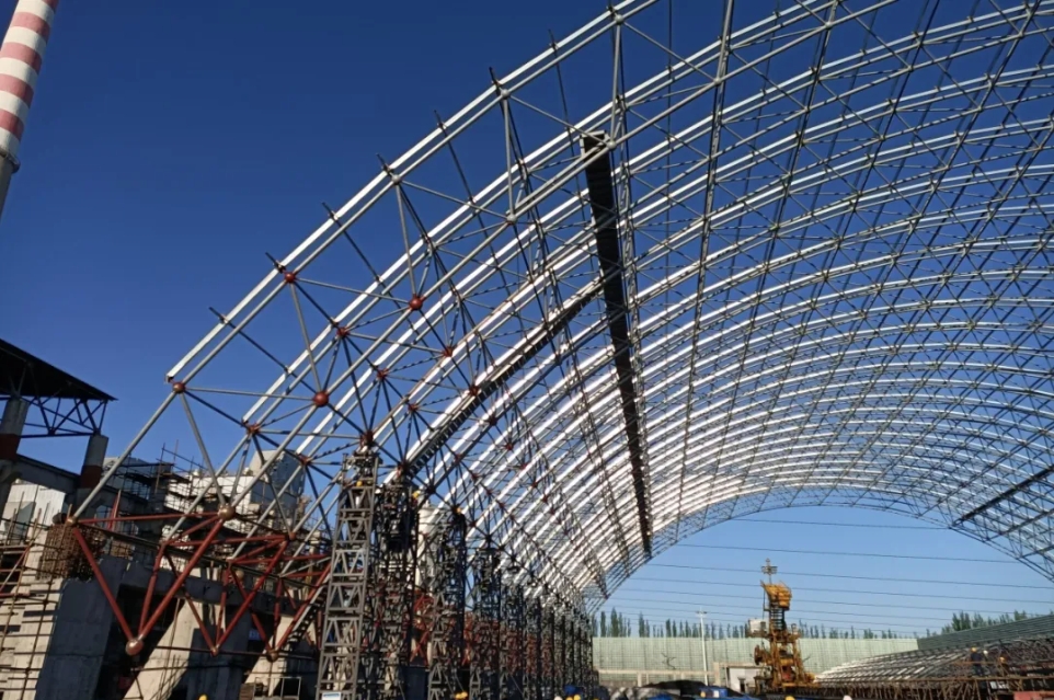 该成果融合单侧起步拼装、分步顶升、临时支撑与计算机工况模拟技术,实现网架近地面拼装焊接,应用后大幅减少脚手架及吊装设备使用,施工效率提升40%,安装精度误差≤5mm,质量合格率100%。目前,已应用于独山子热电厂储煤场等重点工程。