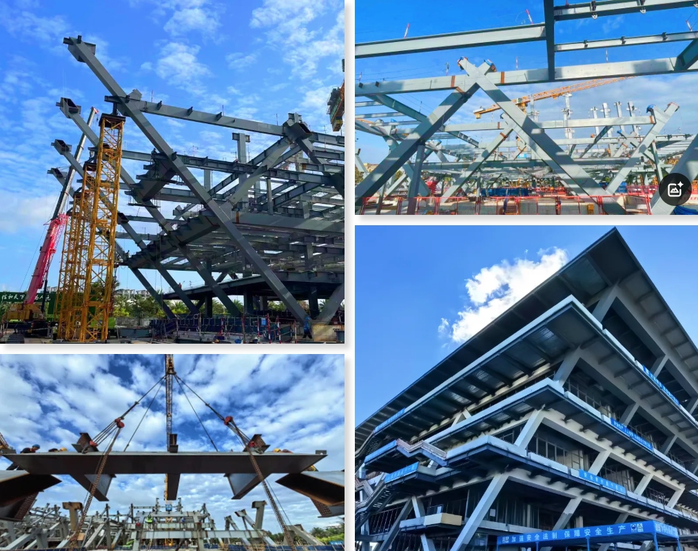 其中大跨度跃层交叉钢斜柱错层安装技术