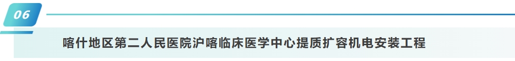 第四工程公司承建的喀什地区第二人民医院沪喀临床医学中心提质扩容机电安装工程已于今年1月正式开工,该项目位于新疆维吾尔自治区,以争创“昆仑杯”、喀什市“文明工地”和“标化工地”、“绿色二星”为目标,项目建成后,将进一步优化和完善喀什地区的医疗服务体系,更好地满足广大市民的医疗需求,助力喀什二院打造成为南疆医学高地。工程公司负责施工图纸及设计变更和签证范围内的水电暖、消防、通风、弱电、医疗专项系统施工任务。