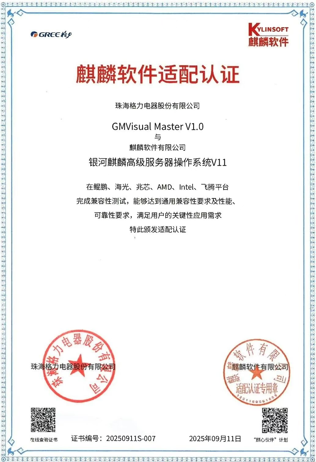格力泰山楼宇智控系统与银河麒麟高级服务器操作系统V11完成认证,推动楼宇智控国产化进程