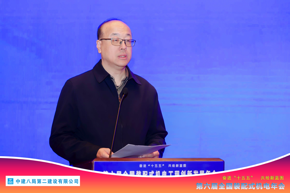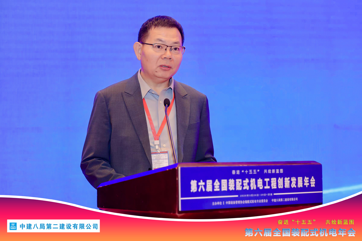 中国设备管理协会副会长兼秘书长王松出席年会并在开幕式致辞中强调:“‘第六届全国装配式机电工程创新发展年会’的召开,既是回望“十四五”以来行业发展的奋斗足迹,更是为‘十五五’新征程凝聚共识、锚定方向,全面推动装配式机电普及应用和产业高质量发展的一项重要举措。”王松表示:“当前,装配式机电正经历从技术探索到规模化应用的关键阶段。‘十五五’时期,要紧抓新机遇、新动能,以新型工业化为契机,以科技创新为引领,以深化改革为动力,以人才建设为支撑,持续推动科技创新与产业融合,构建‘工程工厂化’与‘工程产品化’并行的产业格局,加快推动在新兴产业和未来产业等新兴领域基础设施建设中发挥更大的科技支撑作用,促进装配式机电工程和产业化发展迈上更高质量、更有效率、更加有序、更可持续、更为坚实的发展之路。”