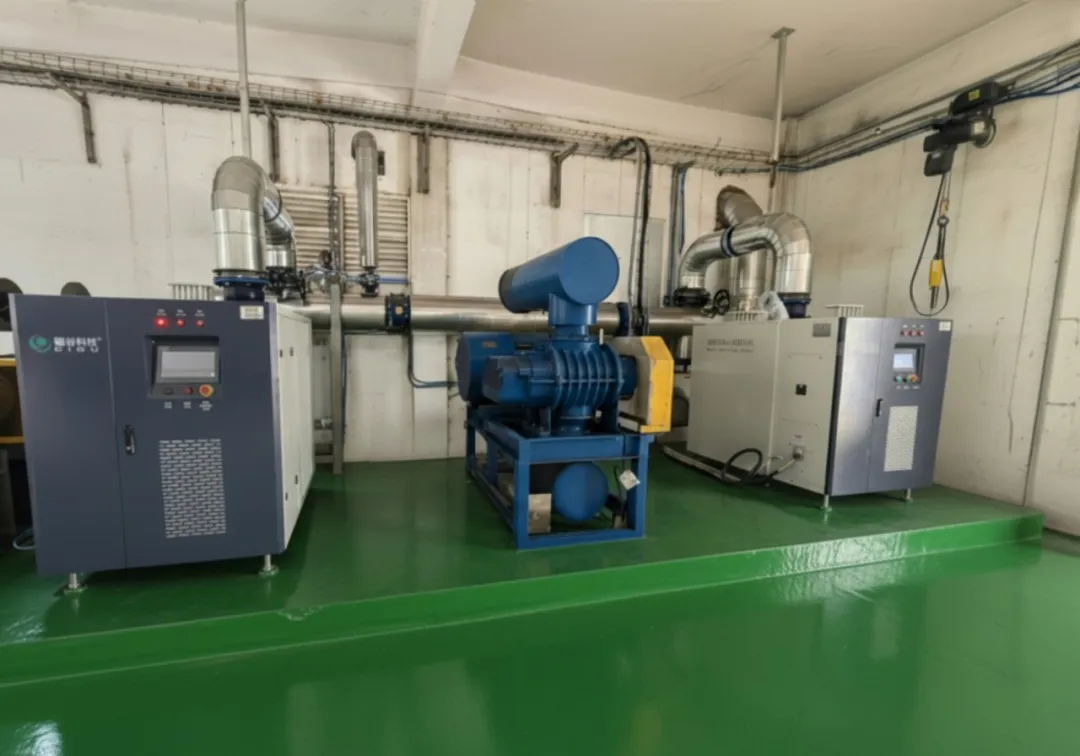 在引入磁悬浮鼓风机前,该企业长期使用 2 台传统罗茨鼓风机负责曝气作业,两台设备总功率 150kW。随着环保标准不断提高及企业对成本控制的需求升级,罗茨鼓风机的弊端逐渐凸显:一方面,设备运行能耗偏高,每年仅污水处理环节的电费支出就占企业运营成本的不小比例;另一方面,罗茨风机采用容积式送风,风量调节依赖挡板或放风,无法实现无级调速,难以精准匹配酵母废水因生产批次、原料变化带来的水质波动,导致好氧池溶解氧不稳定,影响出水质量;此外,罗茨风机的齿轮、轴承等机械部件易磨损,需定期更换,不仅增加了维护费用,还可能因停机检修影响污水处理的连续性。