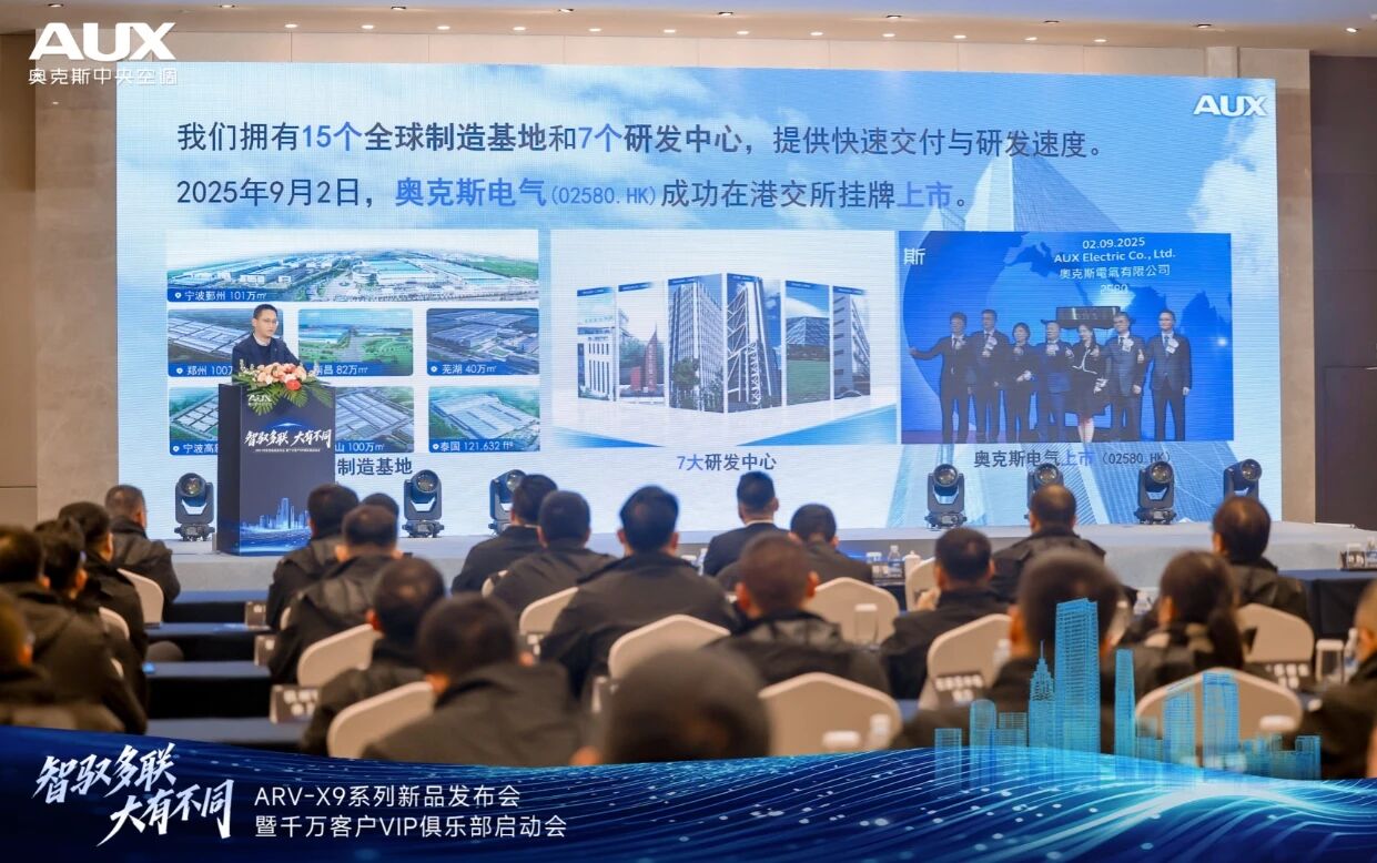 11月28日,奥克斯中央空调正式发布ARV-X9系列多联机。本次发布会以“智驭多联 大有不同”为主题,同步启动了“商用千万客户VIP俱乐部”,并与十家核心合作伙伴代表完成战略签约,这不仅是一次新品亮相,更是奥克斯在商用领域面向新一代建筑环境需求的技术与生态布局。