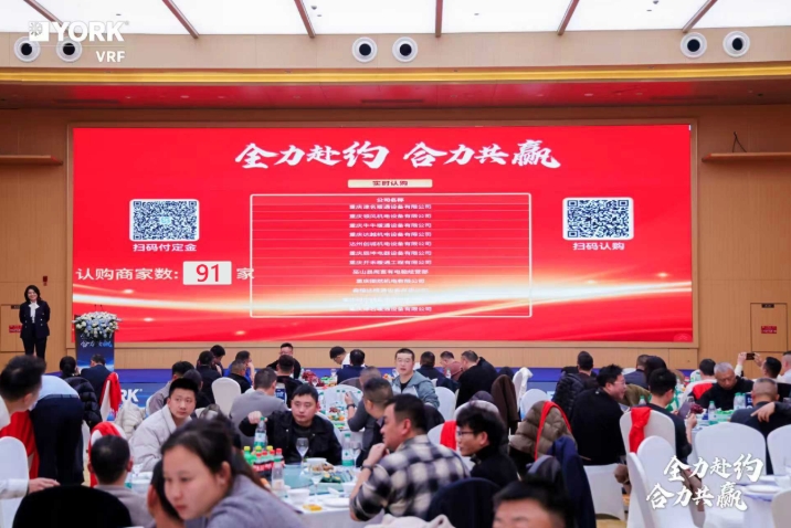 12月8日,以“全力赴约 合力共赢”为主题的2026年约克VRF开盘会议在重庆隆重举行。会议围绕业绩复盘、政策发布、荣誉表彰与前景共绘展开,旨在复杂的经济环境中,进一步深化厂商协作,共同谋划未来发展新路径。参与开盘认购的渠道共91家,2026年度认购设备任务总规模达4550万。这一超预期的认购成果,充分展现了渠道伙伴对约克VRF品牌与未来市场的强劲信心,也为新一年的合作共赢奠定了坚实的基础,预示着双方将携手实现新的超越。