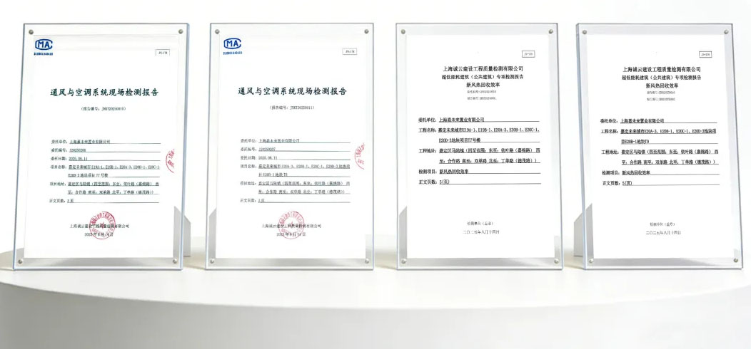 作为超低能耗典范项目,嘉定未来城市对新风系统节能指标提出了更加严苛的要求。环都拓普凭借成熟的超低能耗建筑暖通解决方案,为市集空间和艺术展厅提供热回收新风产品与技术支持,助力项目顺利通过验收评定,成功入选 “十四五” 国家重点研发计划示范工程,成为国内近零能耗生活场景落地的鲜活范例,为城市绿色与低碳社区建设提供了可复制、可推广的实践路径。