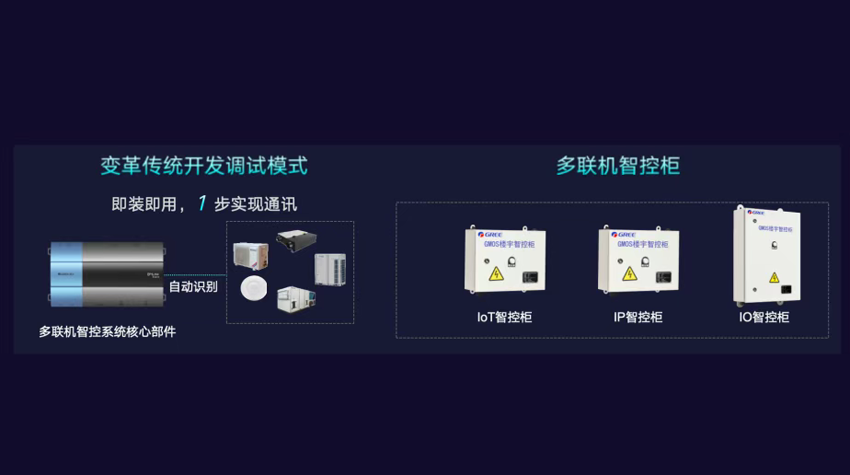 当前,行业普遍面临设备繁杂效率低、项目定制开发周期长、系统能耗高等难题,制约了其规模化推广。为此,格力自主研发领域专属操作系统,并在此基础上构建了新一代开放共享的楼宇智能控制平台,推出多联机智控系统核心部件与GMOS智控柜,彻底改变传统调试模式,实现“即装即用、1步通讯”。