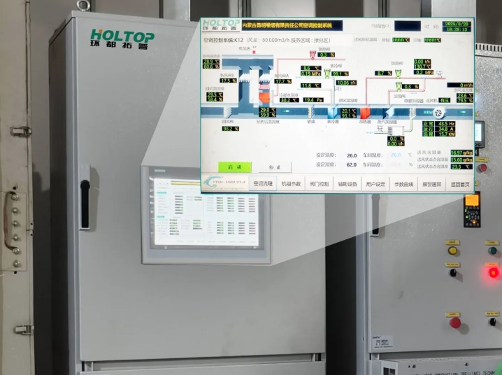 针对客户需求,环都拓普为蒙昆公司量身定制了组合式空调机组方案和数字化智能控制设备。本次项目共部署1台10万风量和4台6万风量恒温恒湿空调设备及环网高精度控制系统。