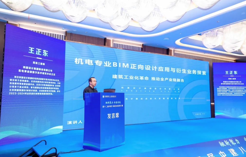 大赛同期举办了BIM技术发展论坛,邀请山东建筑大学教授张新、宾夕法尼亚大学助理教授胡雨晴、同圆设计集团股份有限公司机电事业部数字技术研究中心主任王正东、欧特克软件(中国)有限公司工程建设行业资深技术经理王申等四位专家,分别就BIM与智能建造的融合、BIM与AI的建筑全生命周期智能化管理、机电BIM正向设计应用与衍生、AI时代设计与施工的守正与创新等主题进行了专业分享。